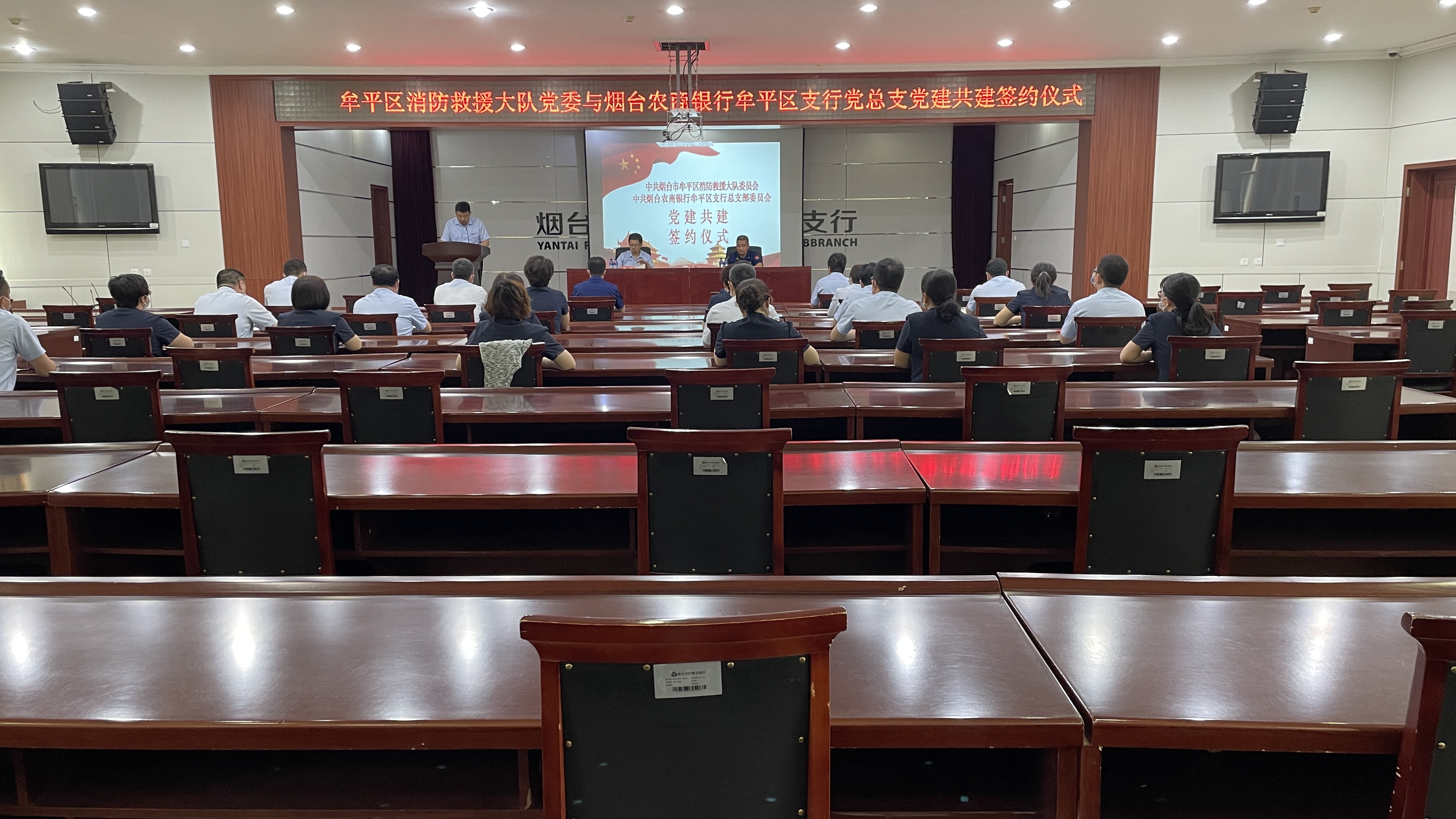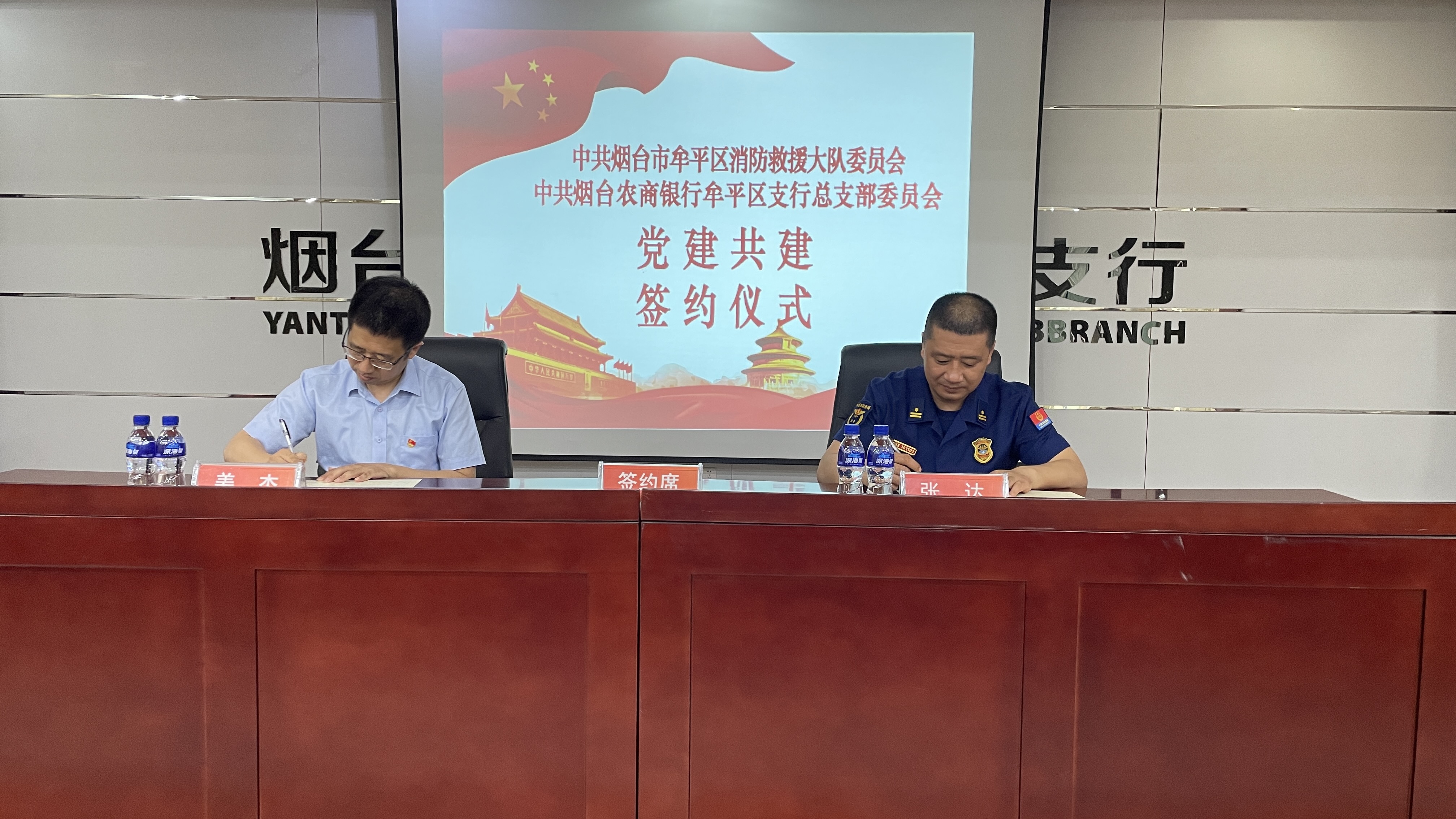 水母网6月7日讯(通讯员 赵灿灿 姜震)为进一步夯实基层党建工作基础,充分发挥党建引领优势,6月7日,烟台农商银行牟平区支行与牟平区消防救援大队举办党建共建签约仪式暨消防安全知识普及活动。