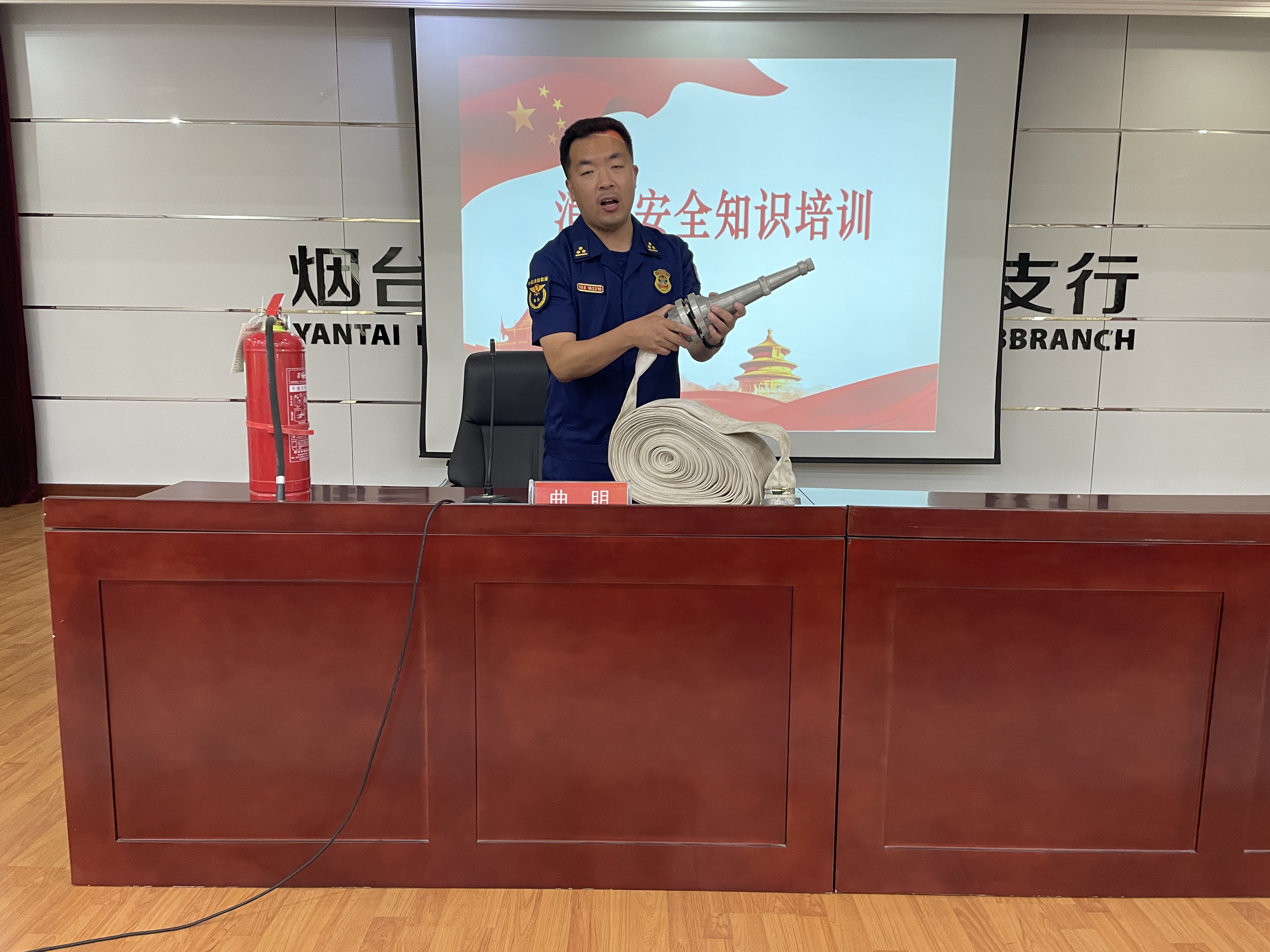 随后,消防救援大队指导员为该行干部员工开展了消防安全知识培训,详细讲解了消防安全“四个能力”,灭火器及消防水带的使用以及家庭消防安全知识,同时对该行消防工作给予专业性指导,有效提升了该行员工消防安全防护意识和消防安全工作水平。